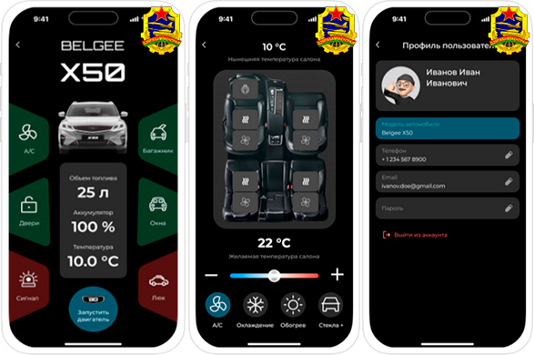 • авторизация пользователя: защищенный доступ к функциям управления автомобилем с использованием персональных идентификационных данных, обеспечивая высокий уровень безопасности;